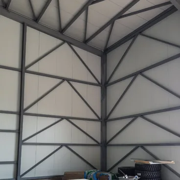 Inspection of the steel hall was carried out to verify compliance with design specifications .